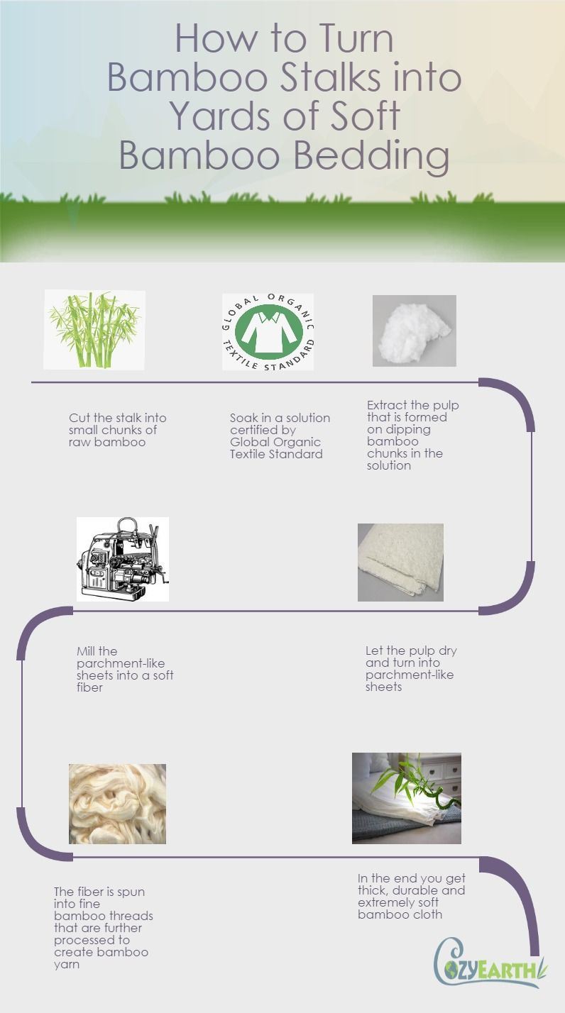 The journey from a bamboo stalks into a yard of soft bamboo bedding results into 100% organic bedding that is both environment and skin friendly. This chemical free conversion process helps you sleep comfortably in the Night that helps your skin to breath all Night. Below is an elaborate process in the form of infographic by which organic bedding manufactures convert the bamboo grass into fine bedding.