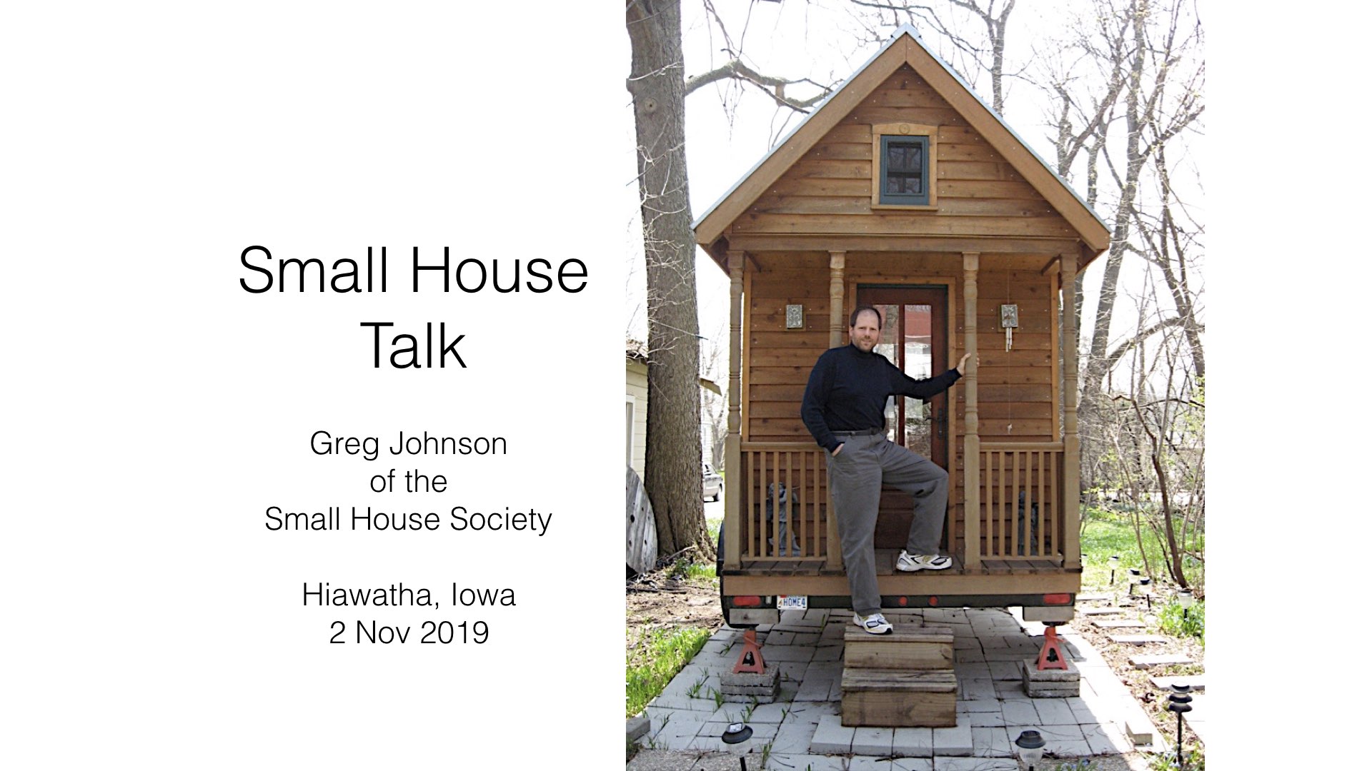 Greg Johnson of the Small House Society talks about the tiny house movement over the past 19 years. This event took place at the Public Library in Hiawatha, Iowa.